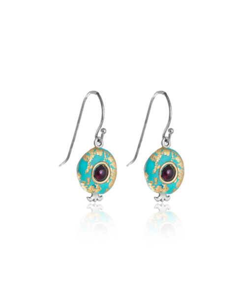 All our jewelry is handmade from precious metals such as solid 14k gold, 925 sterling silver or vermeil ( the silver plated with 18k gold), decorated with colored enamel and natural gems. The production takes place in our cozy Jerusalem studio.