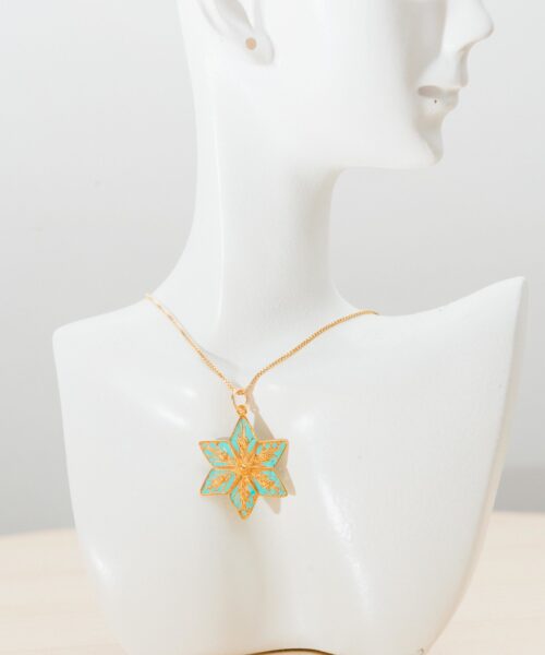 The set jewelry is made of 18k Gold filled and decorated with Mint enamel.