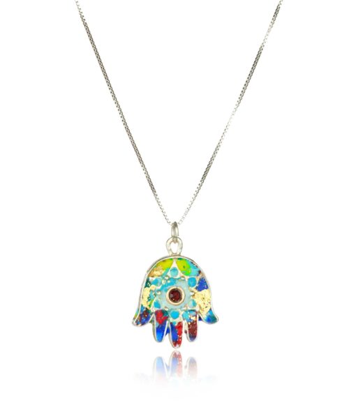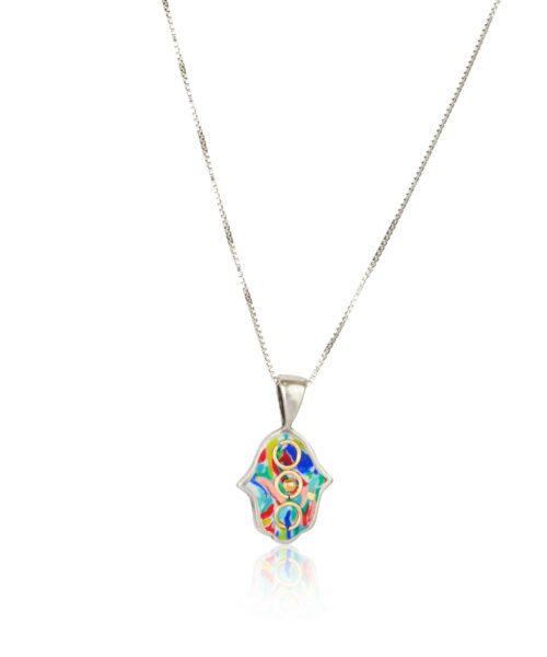 Multicolored Hamsa Necklace Sterling Silver