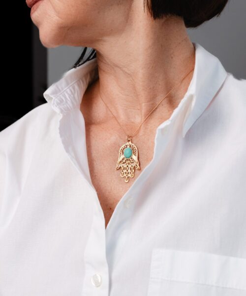 Turquoise Hamsa Necklace 925 Silver with gold