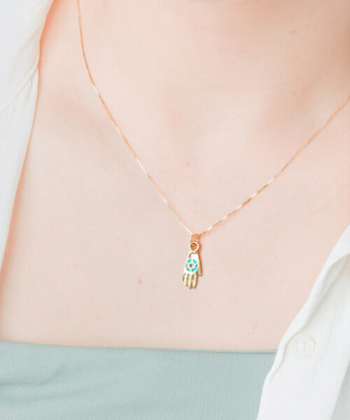 Small Hamsa Necklace 18k Gold filled with Turquoise Enamel
